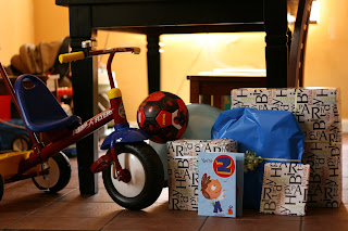 After Jagger woke up from his nap today, we had a little celebration for his birthday. Aunt Kelly was able to join us. Yay! Jagger opened presents and we sang happy birthday while he blew out the candles. Jagger received quite a bounty. He was pretty lazy about opening presents and preferred to let Corey open them and just hand it to him. Everything was a hit!